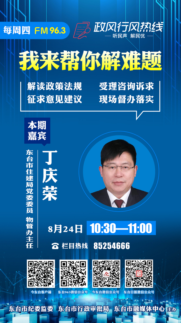 【预告】东台市住建局党委委员、物管办主任丁庆荣走进《政风行风热线》