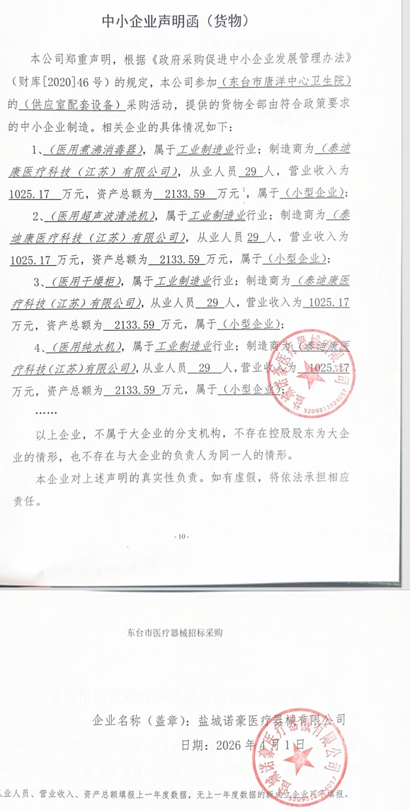 1 | 盐城诺豪医疗器械有限公司(小微) | 69.00 | 30.00 | 99.00 | 1 |