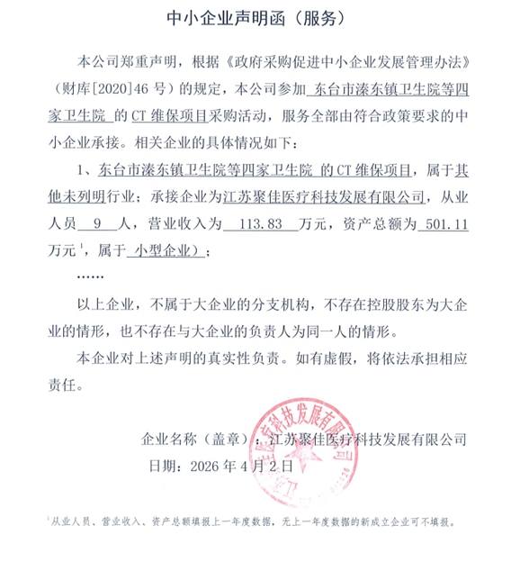 东台市溱东镇卫生院等四家卫生院CT维保项目中标结果公告