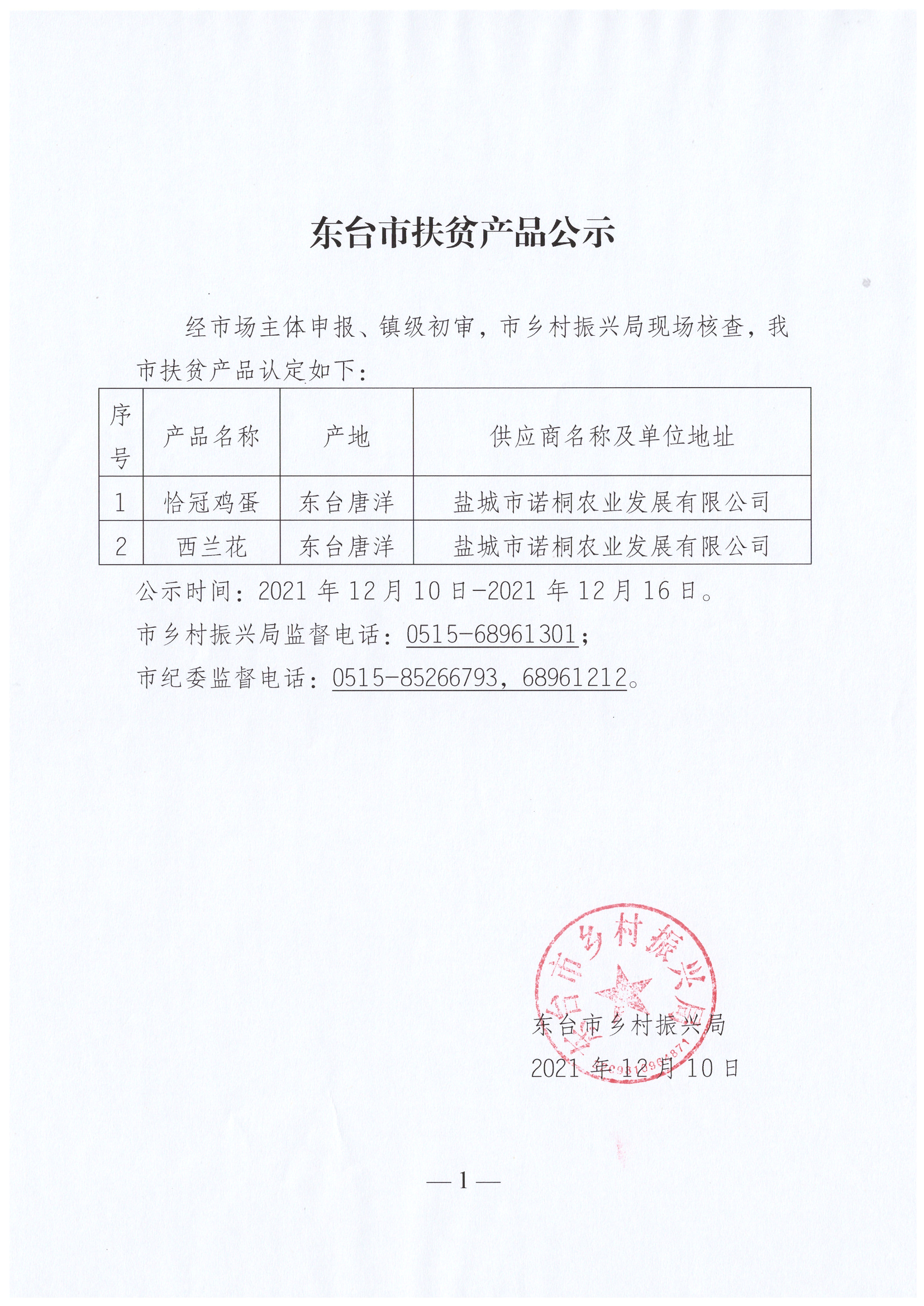 东台市扶贫产品公示