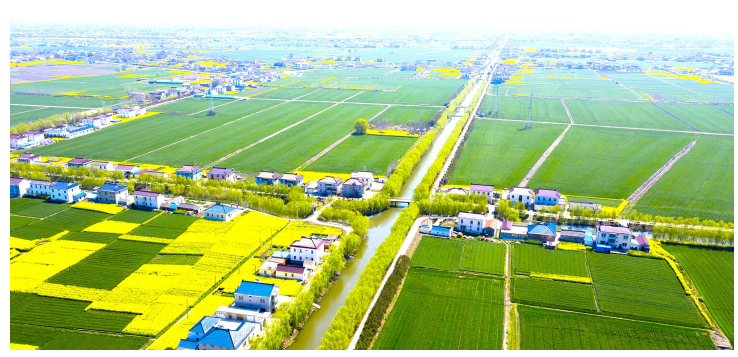 阳光明媚,春风和煦。走进梁垛镇殷乐村,这里天蓝、路净、岸绿、河清,一排排蔬菜大棚点缀田间,油菜花儿芳菲飘香,呈现出“村在水中,房在绿中,人在画中”的自然和谐景观。