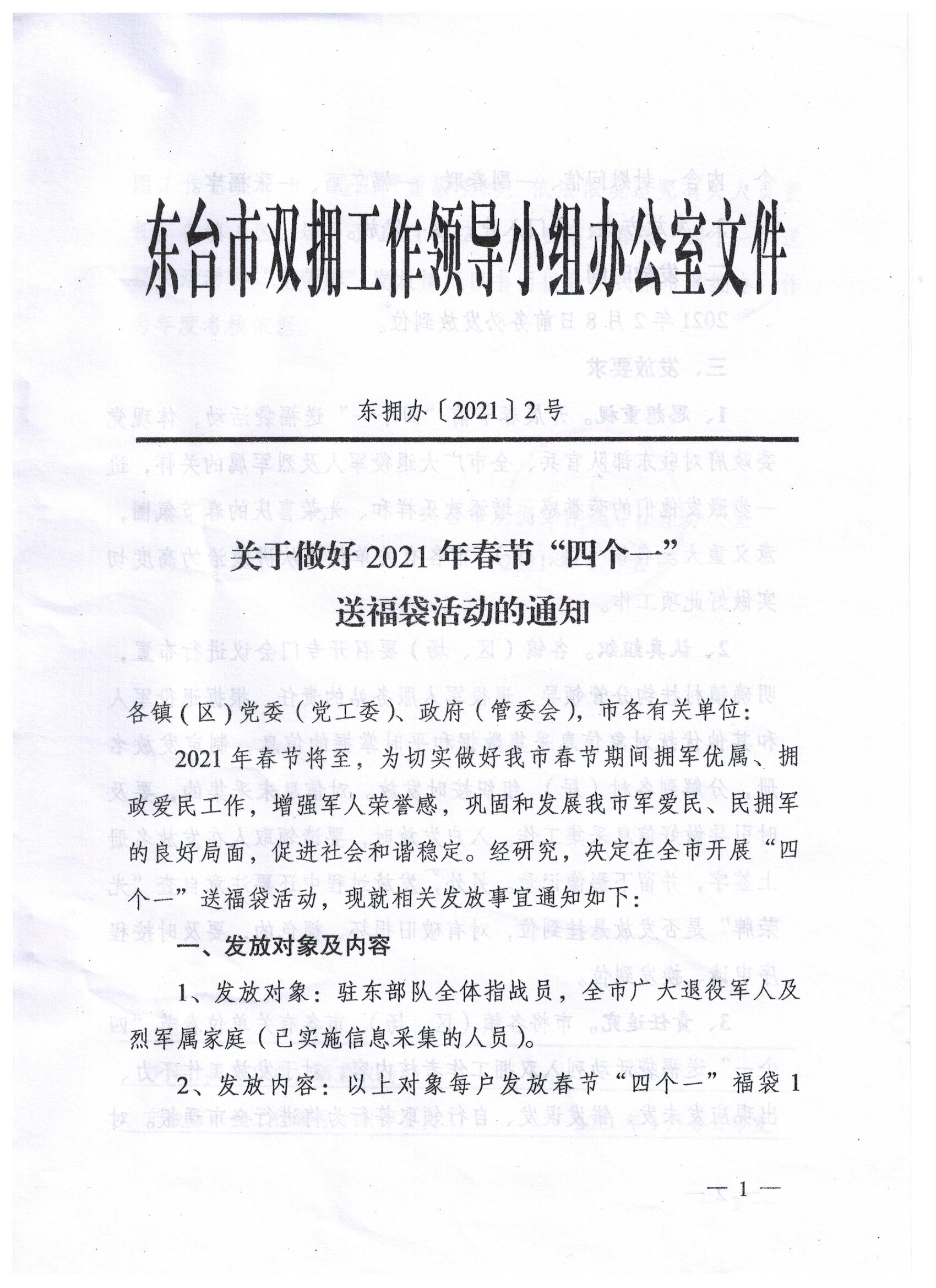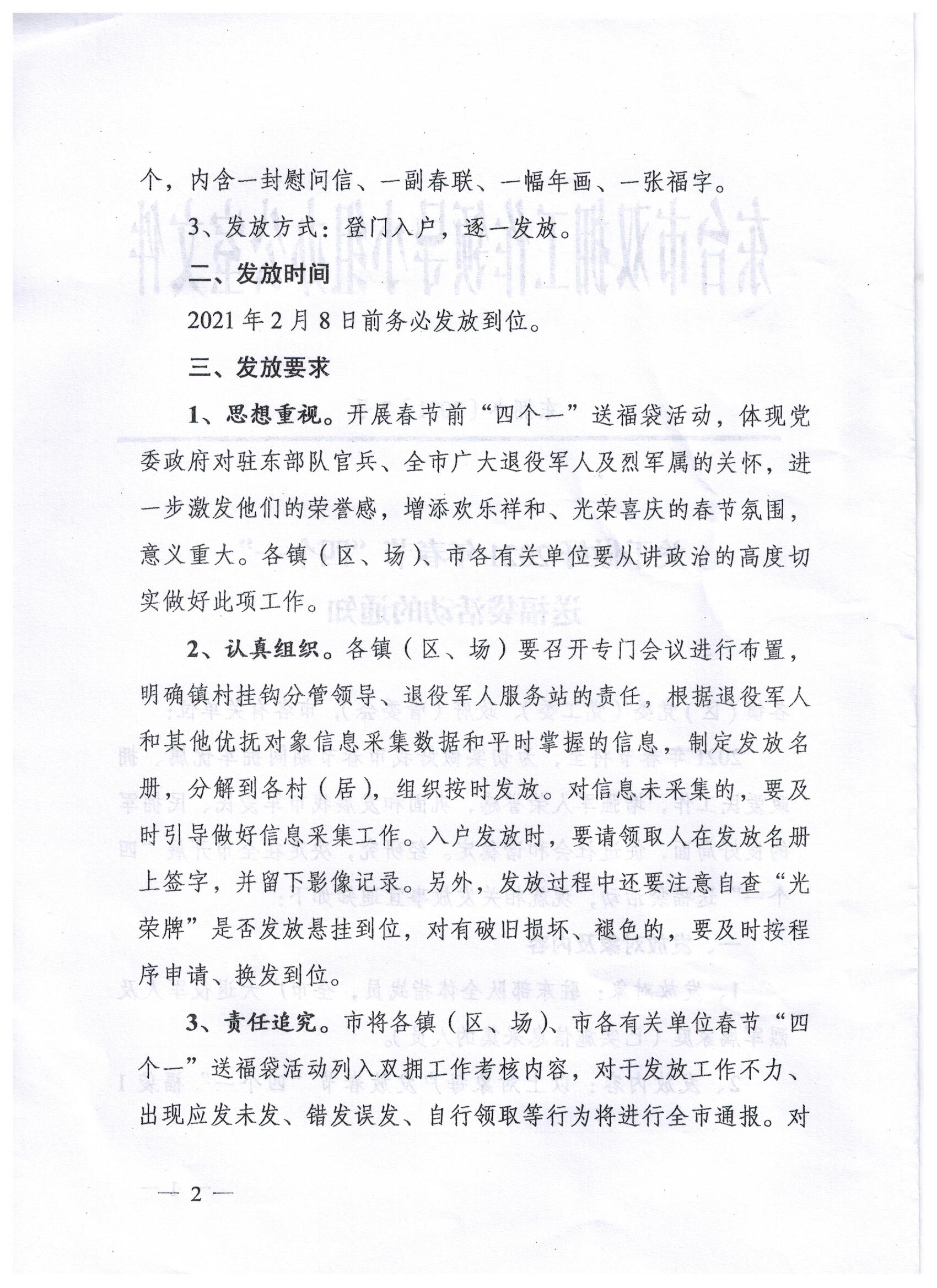 关于做好2021年春节“四个一”送福袋活动的通知