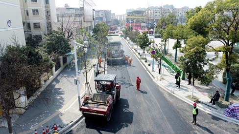 工程自进场施工以来,施工单位每天组织150多人和各种工程机械分10个班组挂图作战。目前,玉带街、寺前街就地热再生沥青路面改造施工已完成,施工单位正在集中精力加快进行该工程的其它子项目施工,预计整体工程将于上半年完工。