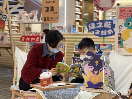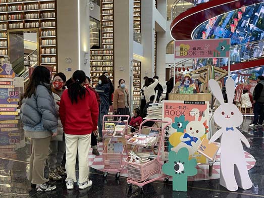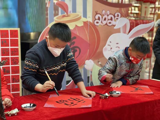 旧书换新友摊位前,书迷朋友们将自家书籍贴上标签与寄语送至此处进行书籍交换,通过一本书的漂流,让阅读变成一种爱的传递和全新的生活方式;书籍盲盒促销摊位前,市民朋友一边享受拆盲盒的快乐,一边收获精神食粮;手作体验课程摊位前,家长和小朋友一同制作兔子灯,感受春节习俗,品味传统文化;党的二十大主题书画展区,小朋友们拿起毛笔书写“福”字,感受中国传统节日的喜庆和快乐……缤纷多彩的互动活动,在春节期间给市民朋友们带来了文化饕餮大餐。市民黄女士特意带着孩子来参加活动,她表示,这样的图书市集形式新颖,也很有意义。