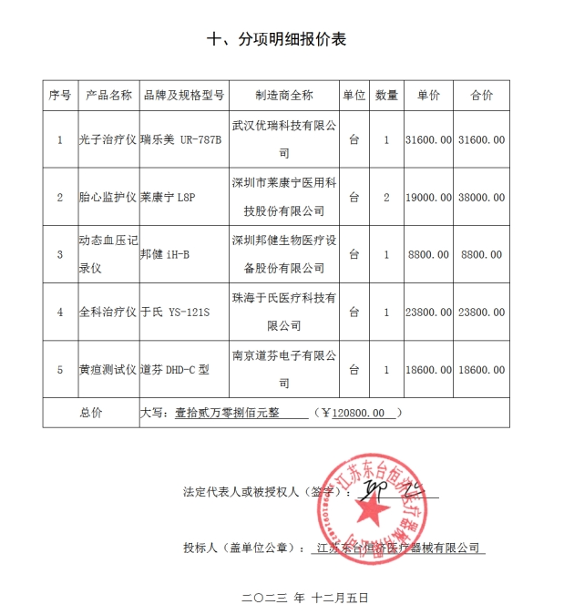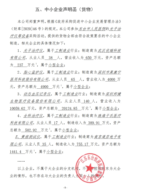 东台市人民医院光子治疗仪等设备(二次)项目中标结果公告