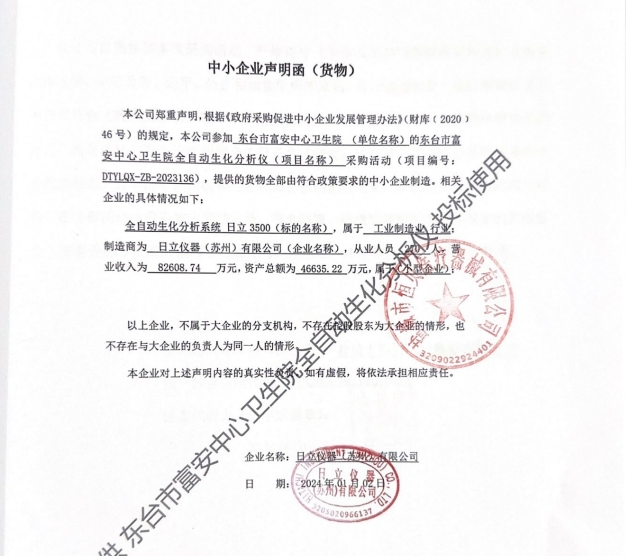 东台市富安中心卫生院全自动生化分析仪项目中标结果公告