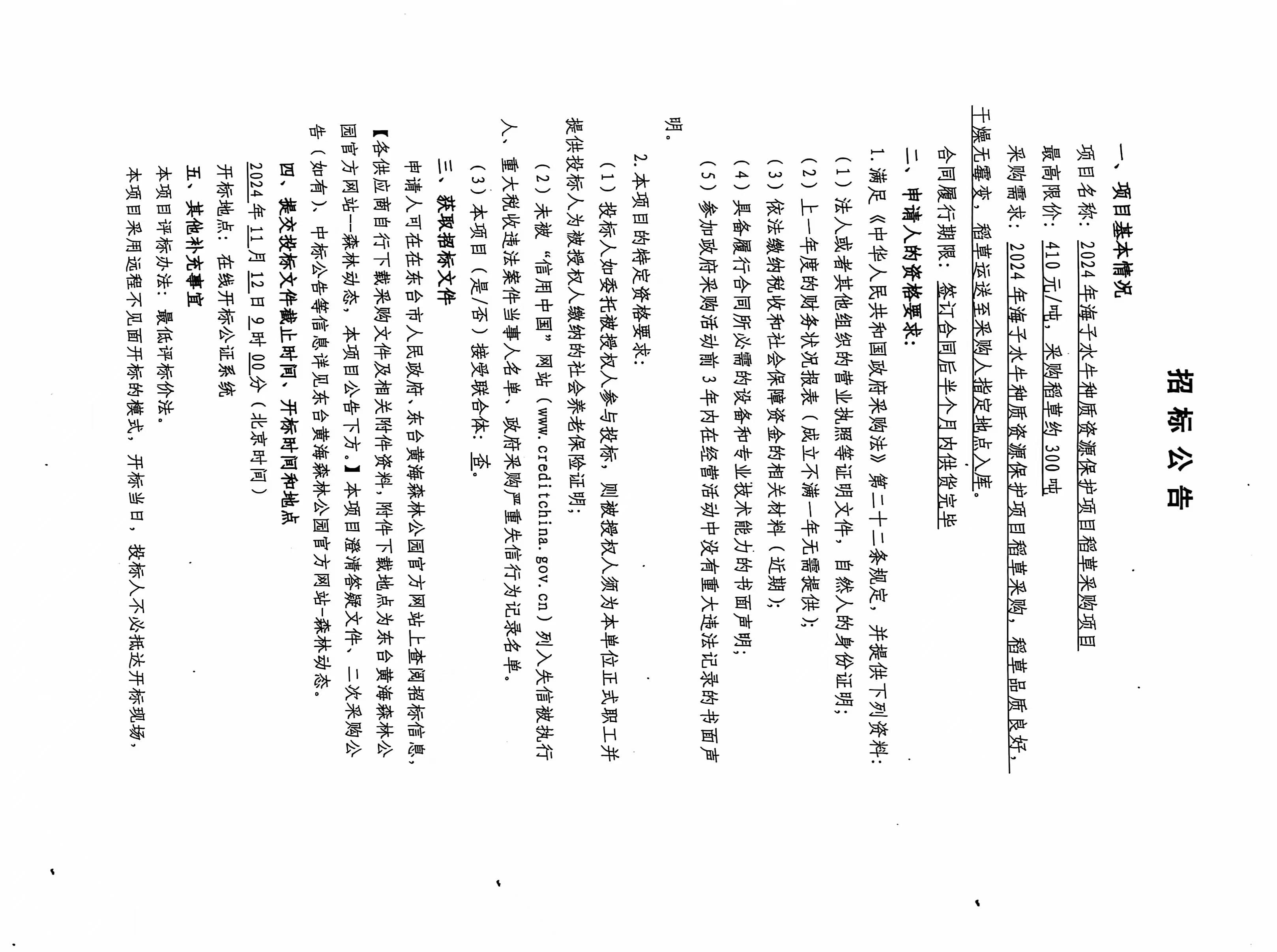 2024年海子水牛种质资源保护项目稻草采购项目公告