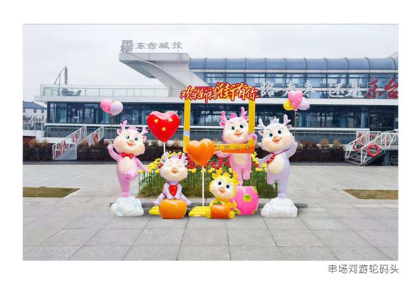 在东台,像东亭里这样悄然“变身”的街区,还有串场河游轮餐厅。作为一条城市人文走廊、亲水景观线路,串场河游轮餐厅的新春限定“皮肤”,在保证其“含龙量”基础上,增添了更多缤纷色彩和俏皮灵动的卡通形象。在盐城工作的市民王妙直言,从国道进入东台市域不久就看到这些春节限定“小景观”,特别温馨,“好像家乡在欢迎我们回家过年。”她乐呵呵地说。