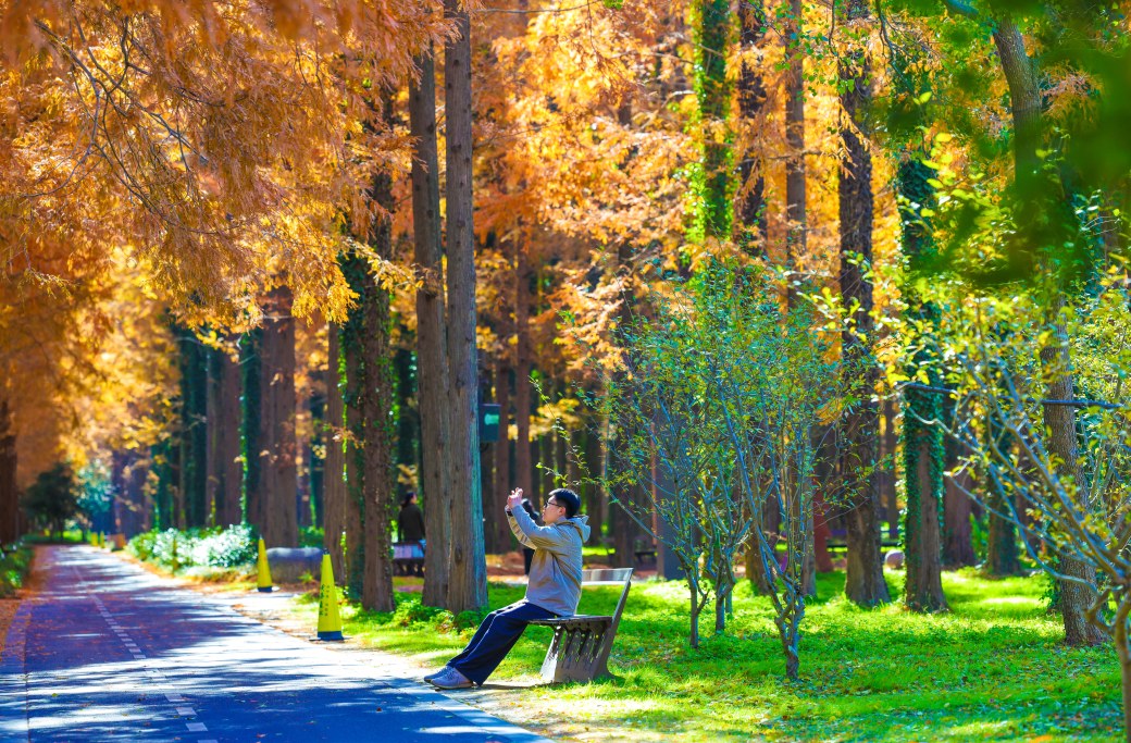 赏景正当时。连日来,黄海森林公园万亩水杉林进入红叶全盛期,形成华东地区规模最大的水杉景观带,呈现“层林尽染、红海连天”的初冬胜景,此季限定景观将持续至12月上旬。