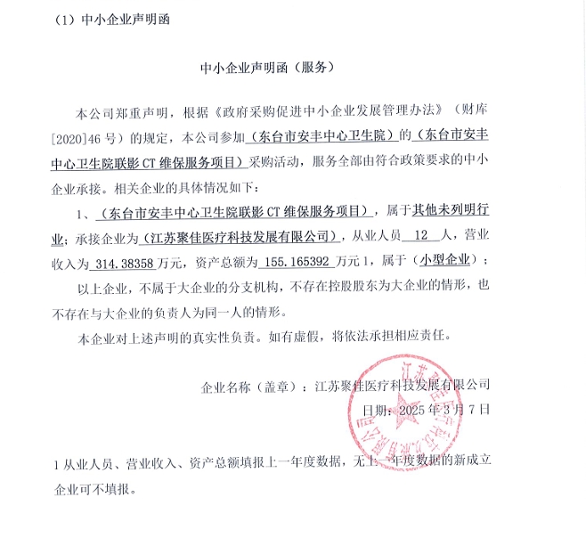 东台市安丰中心卫生院联影CT维保服务,详见招标文件