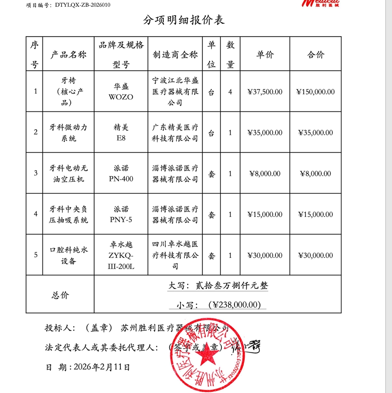 东台市中医院牙椅综合治疗台(二次)项目中标结果公告