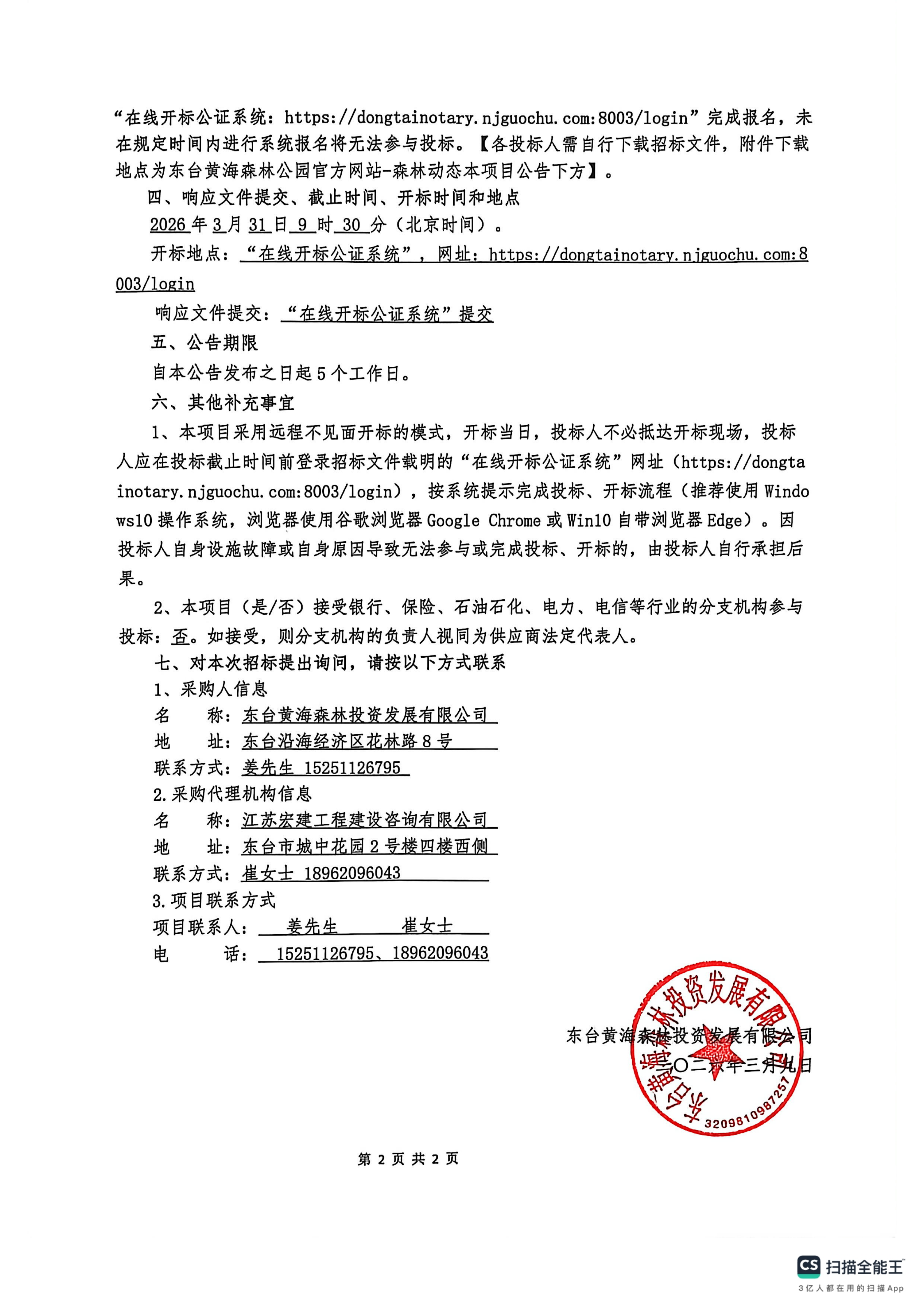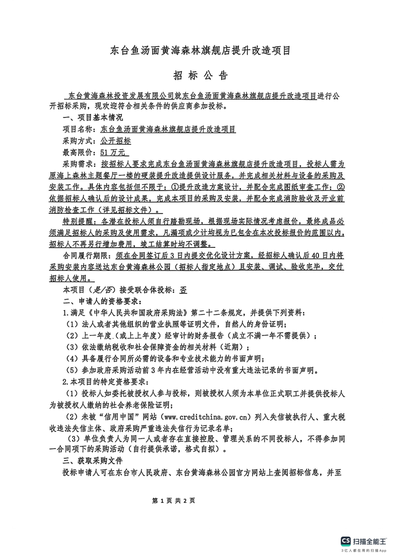 东台鱼汤面黄海森林旗舰店提升改造项目招标公告